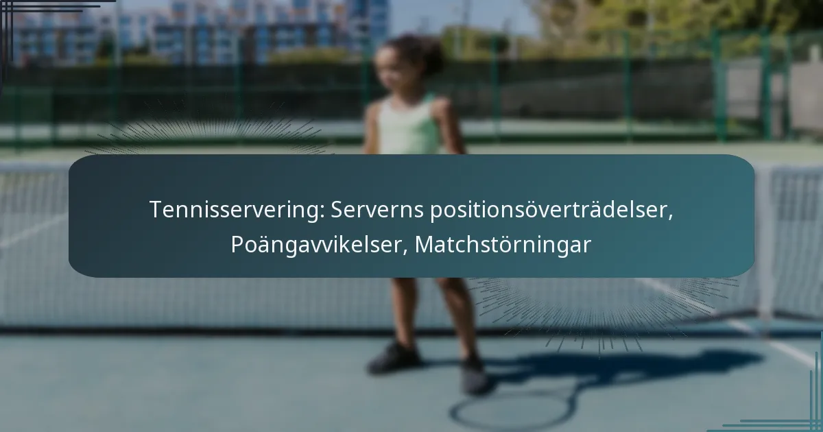 Matchstörningar i tennis relaterade till servering kan uppstå av olika faktorer, inklusive överträdelser av serverns position, poängavvikelser och externa avbrott. Dessa störningar kan påverka spelets flöde och spelarnas prestation, vilket leder till frustration och förvirring på banan.